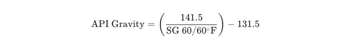 API度は、原油の密度と水(60℉)との相対関係を示す指標であり、以下の公式によって算出される。