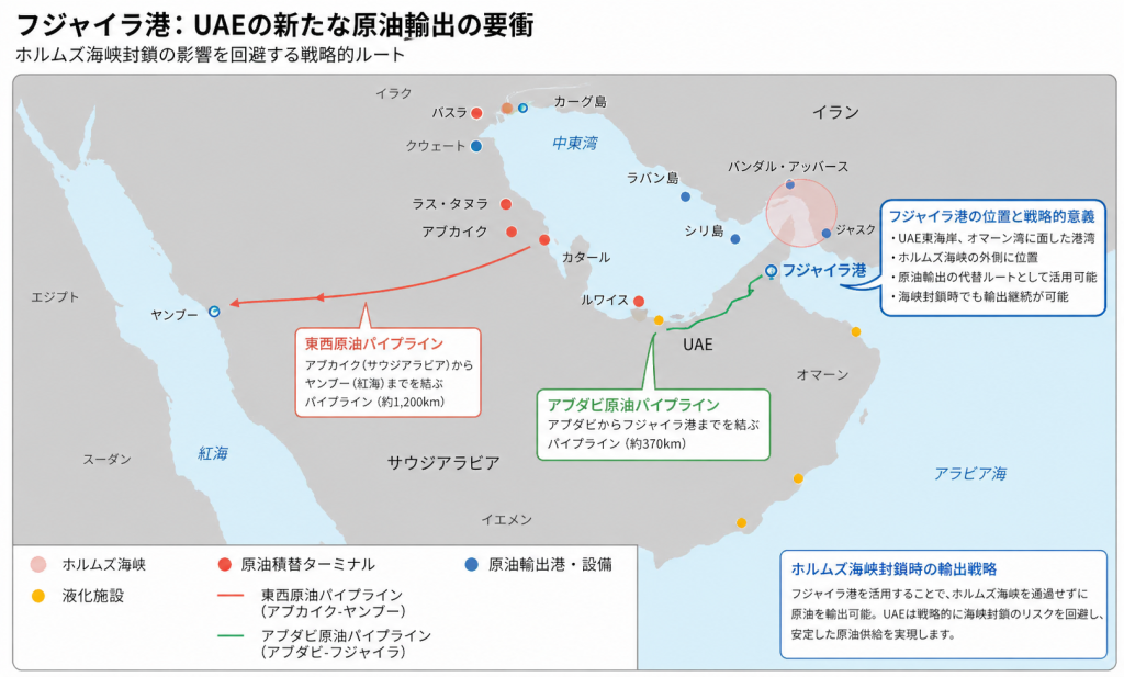 | フジャイラ港貯蔵能力 | 数千万バレル規模 | 戦略的備蓄および輸出ハブとして機能 |
